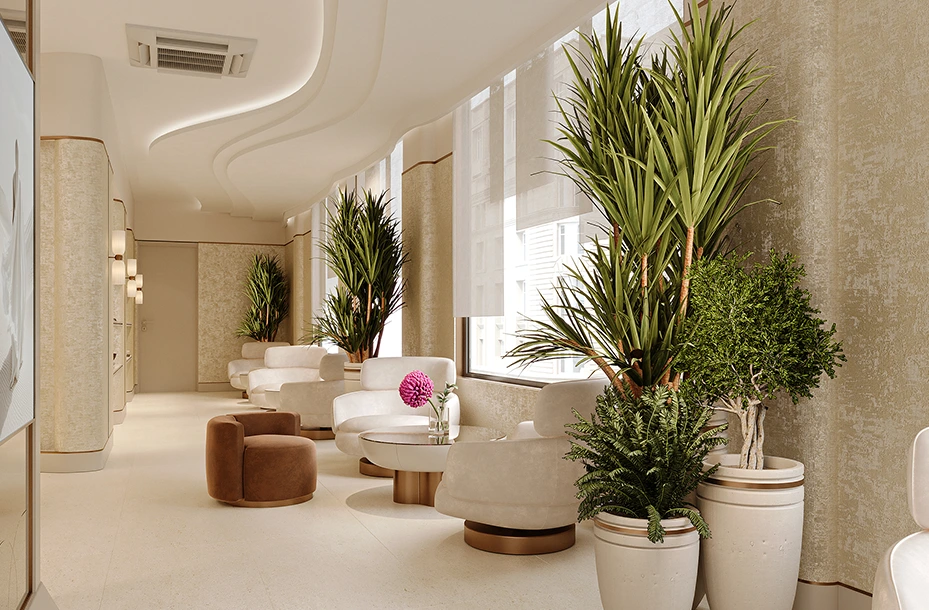 – Không gian chờ tránh cảm giác bệnh viện khô cứng