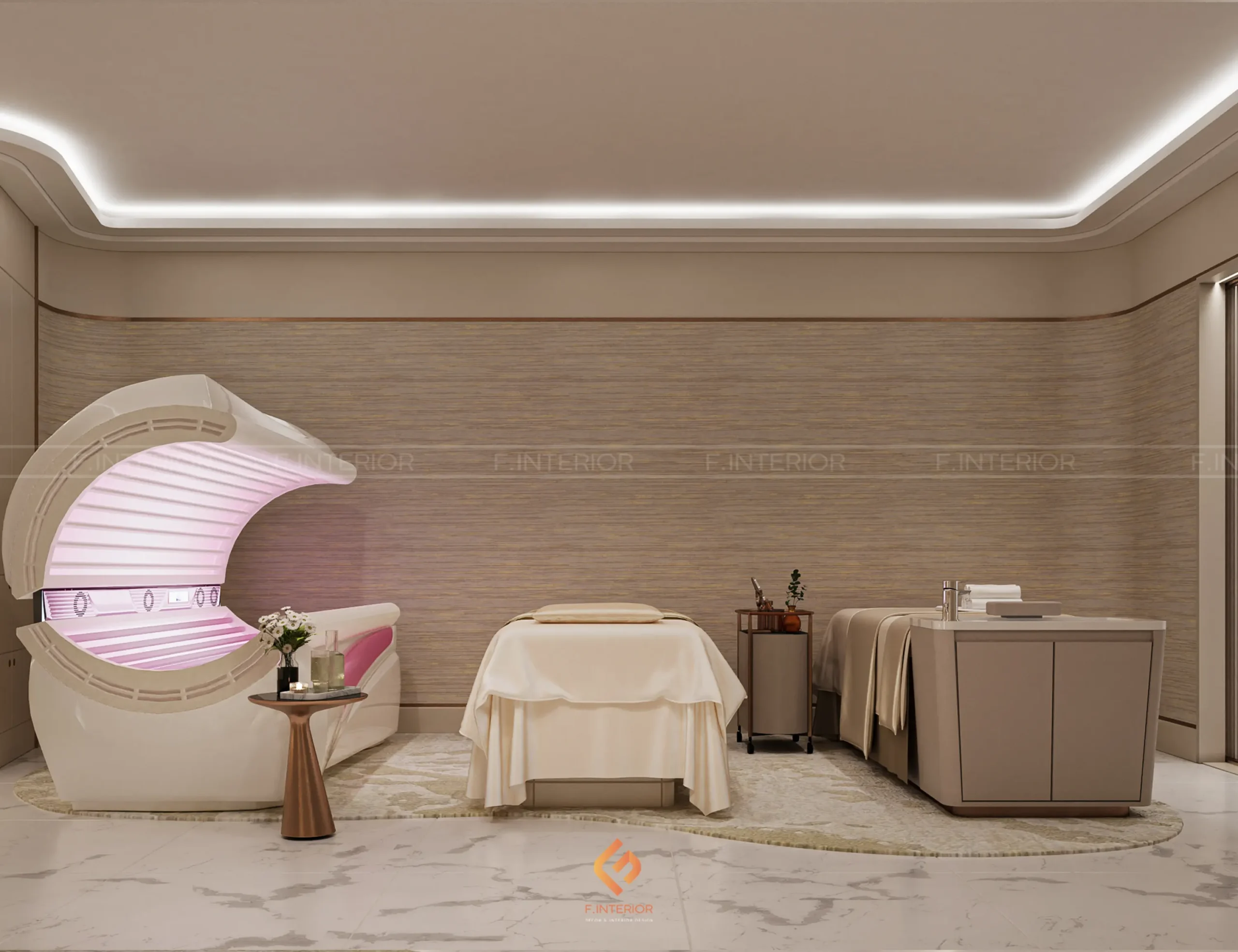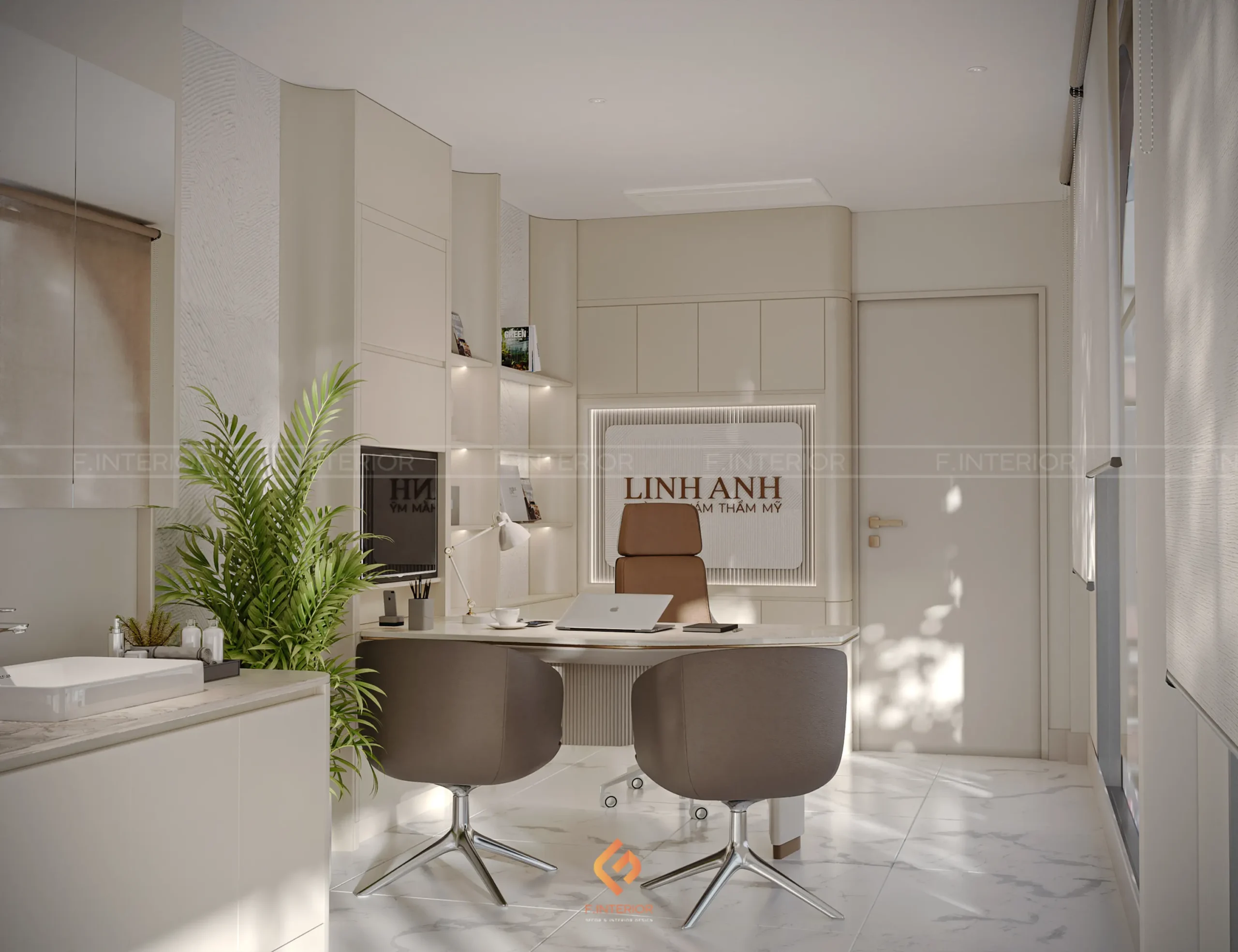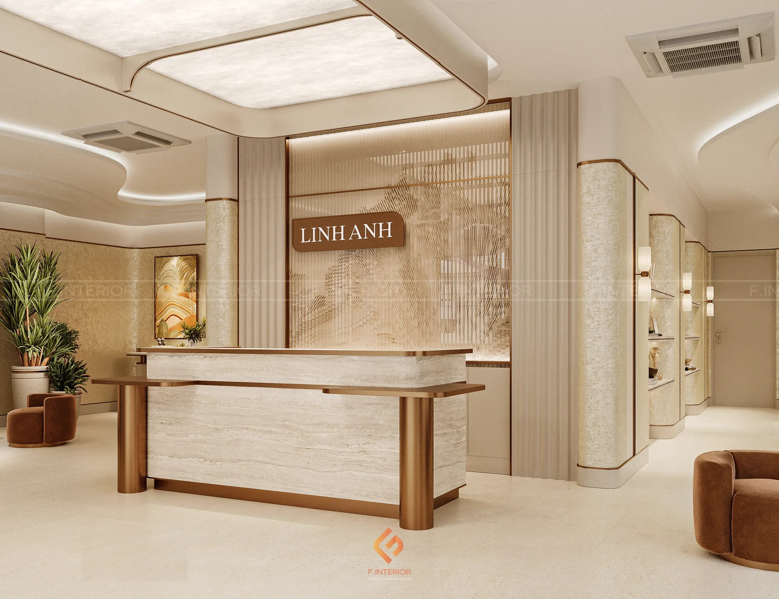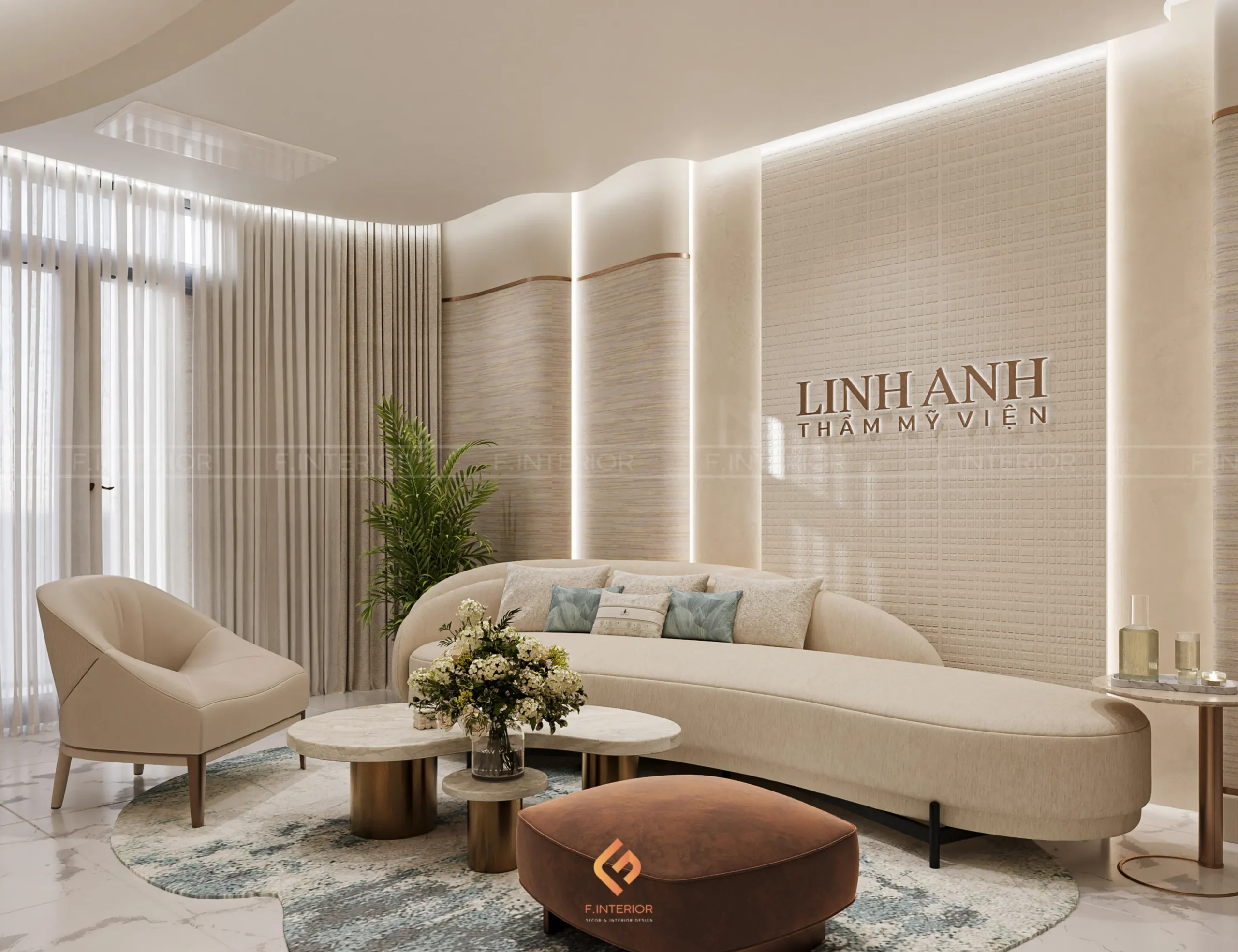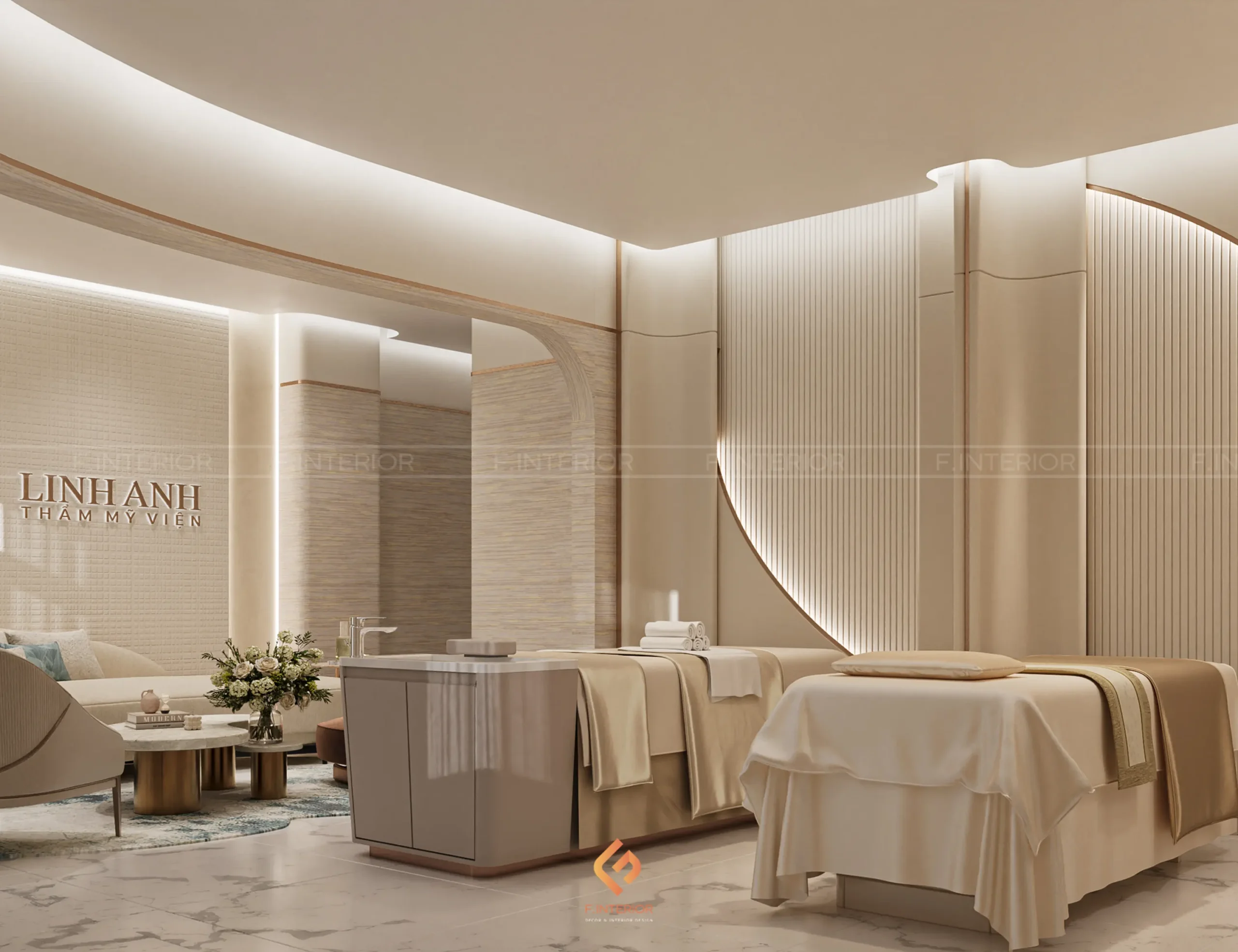 Phòng khám thẩm mỹ Linh Anh được F.Interior định hướng như một không gian không chỉ phục vụ thẩm mỹ, mà còn phản ánh vị thế của một thương hiệu dẫn đầu. Dự án được tiếp cận theo tiêu chuẩn hospitality hạng sang, nơi trải nghiệm khách hàng được tổ chức xuyên suốt và có chủ đích, thay vì tập trung vào từng không gian riêng lẻ.